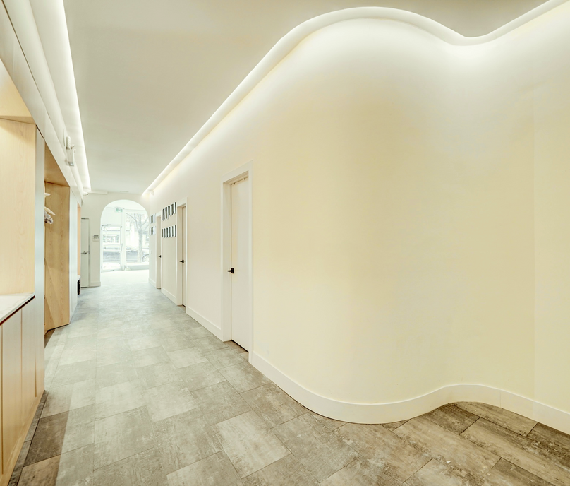 This interior space centers around the theme of beauty and is located in a bustling com-mercial district. The combination of elegant curved elements creates an atmosphere that is expressive and distinctive. A pure white color scheme establishes a serene ambiance, while details add reÞnement. Unusual layouts and circular walls contribute a modern touch and visually expand the space.
