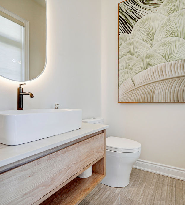 To begin with, Using wood and beige tones to warm up the kitchen and foyer ar eas. we added some unusual details at bathrooms for girls.